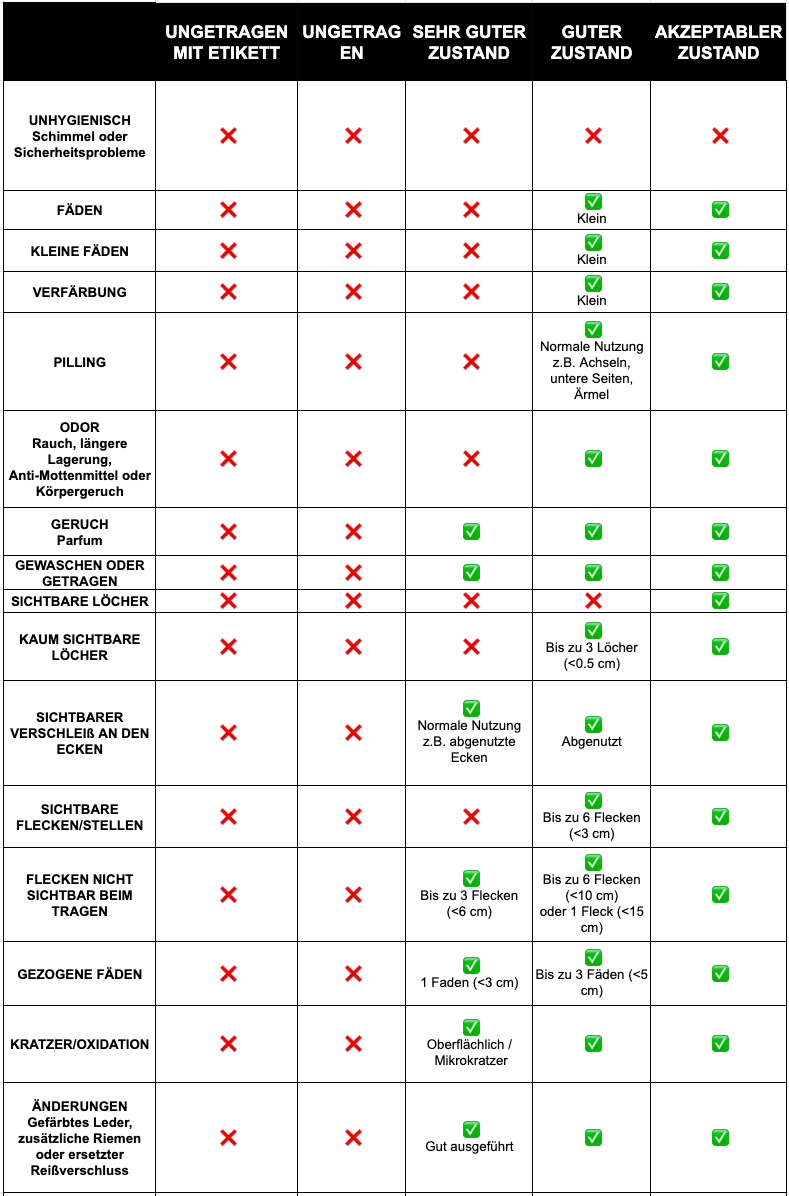 Unsere ausführliche Zustandsübersicht unten hilft Ihnen bei der Auswahl des richtigen Zustands oder nutzen Sie unsere visuelle Anleitung für weitere Informationen.