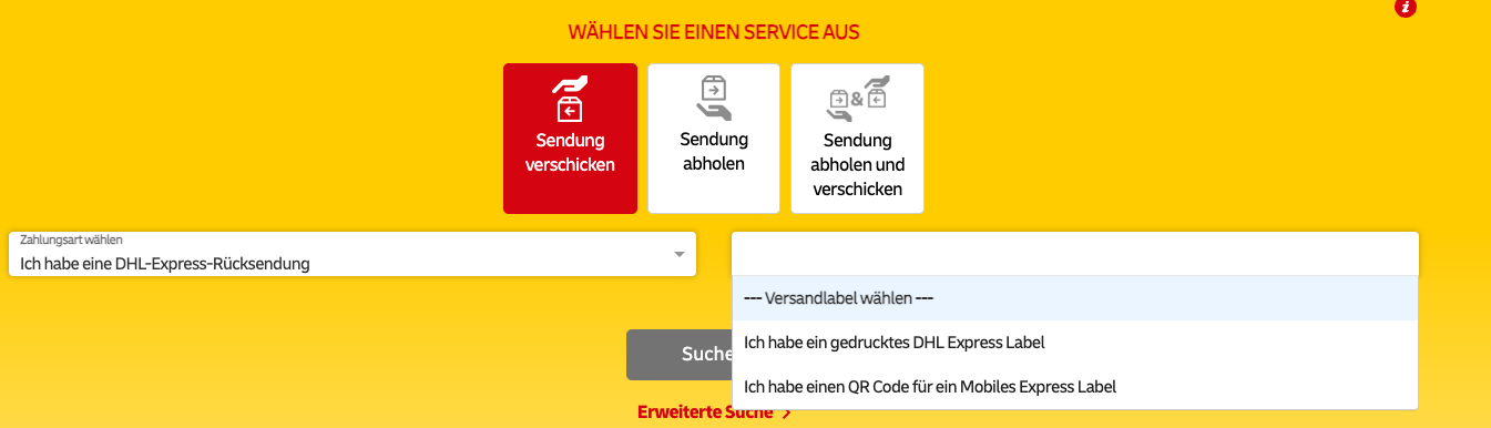 -Abwicklungsoption: „Ich habe einen QR-Code“ oder „Ich habe ein gedrucktes DHL-Label“