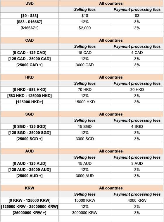 These selling fees apply to all new items listed from July 18th, 2025 onwards, in GBP from March 9th, 2026 onwards and in PLN from January 12th, 2026 onwards.