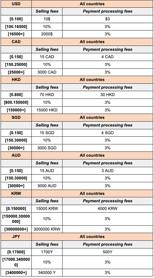These selling fees apply to all new items listed from May 2, 2024 onwards (October 21st, 2024 for USD)
