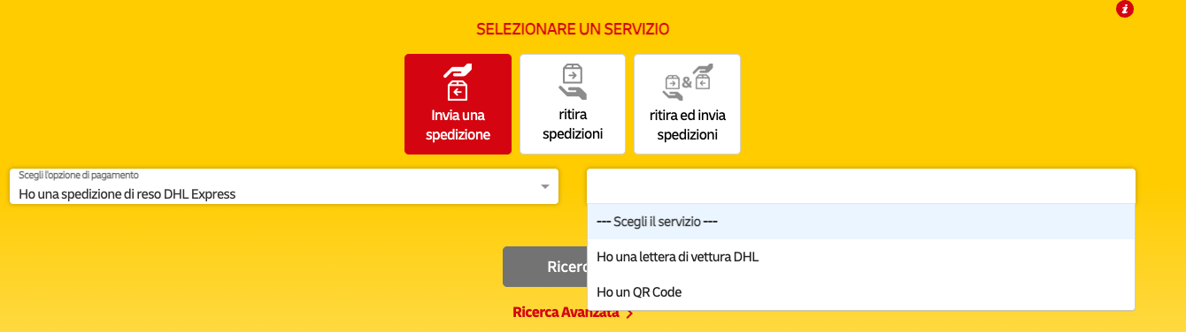 -Opzione di pagamento: "Ho una spedizione di reso DHL Express"