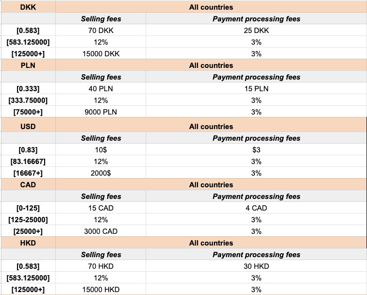 판매 수수료 이외에도 거래의 외부 처리 비용을 충당하기 위해 판매 시 3%의 결제 처리 수수료가 부과됩니다.